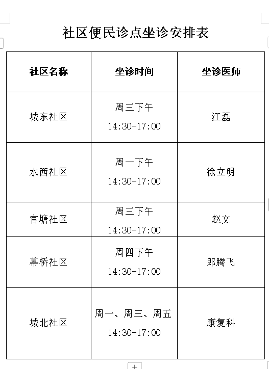 江南春天二期便民诊点 开诊时间:每周日